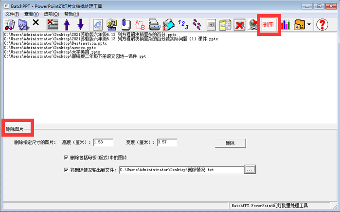 答案是:BatchPPT,一个功能强大的PPT文档批量处理工具。使用BatchPPT的“批量删除图片”功能,我们通过一次简单操作(输入特征图片的长度和宽度厘米)成功地删除了这些广告LOGO: