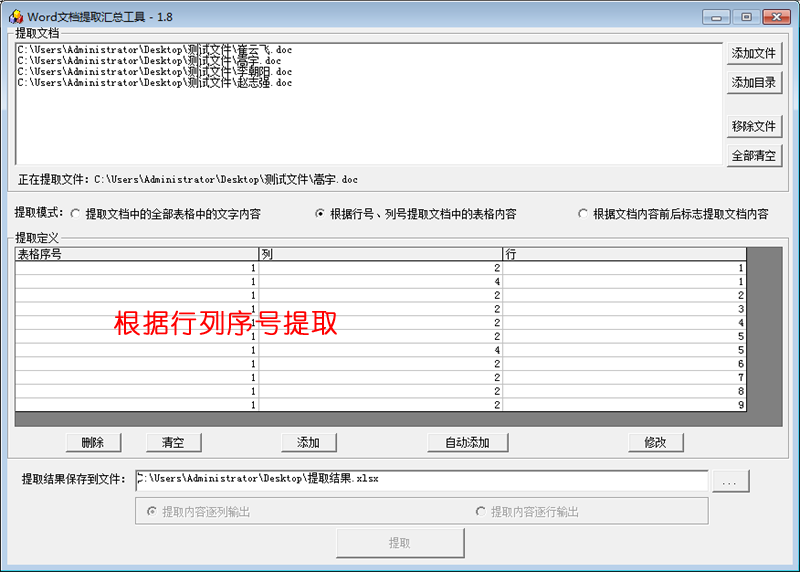然后,使用“自动添加”扫描这个文档,得到需要提取的行列: